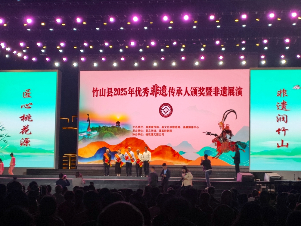 今日竹山網(wǎng)消息 日前,竹山縣桃花源街區(qū)女媧廣場燈火通明,“優(yōu)秀非遺傳承人表彰晚會”在觀眾的期待中拉開帷幕。當竹坪鄉(xiāng)堵河皮影戲第三代傳承人陳中祥與第四代傳承人周承志師徒二人攜手走上舞臺,接過鮮紅的榮譽證書時,臺下掌聲雷動——這份認可,不僅屬于兩位手藝人,更照見了千年非遺的“活態(tài)傳承”。